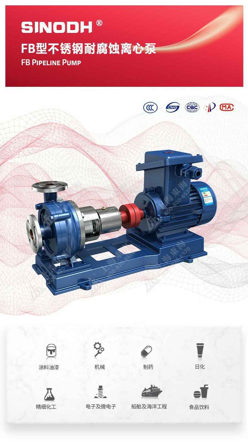 FB型不锈钢单级单吸悬臂式耐腐蚀离心泵,为九游平台网页版登录入口-九游(中国)自主研发生产。本系列产品适用于输送不含固体颗粒,有腐蚀性液体。被输送介质温度为-20℃~200℃,泵的进口压力不能大于0.2MPa,广泛用于石油、化工、冶金、合成纤维、制药、食品、酿造等工业部门,也可供工矿、企业及城市供水、排水之用。