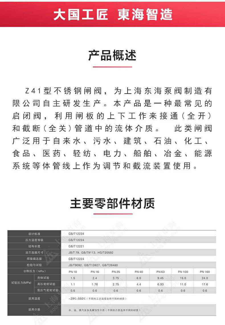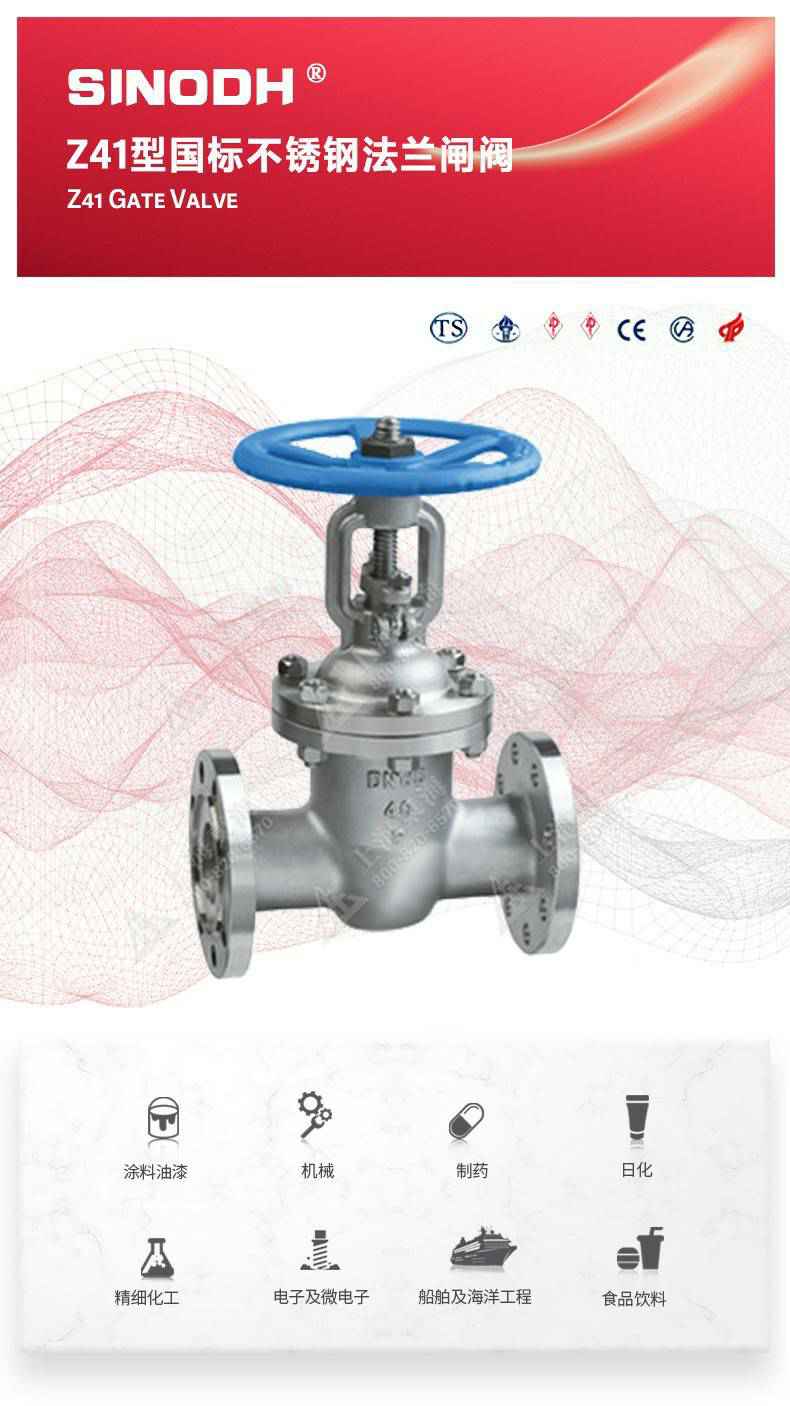 Z41型不锈钢闸阀,为九游平台网页版登录入口-九游(中国)自主研发生产。本产品是一种最常见的启闭阀,利用闸板的上下工作来接通(全开)和截断(全关)管道中的流体介质。此类闸阀广泛用于自来水、污水、建筑、石油、化工、食品、医药、轻纺、电力、船舶、冶金、能源系统等体管线上作为调节和截流装置使用。